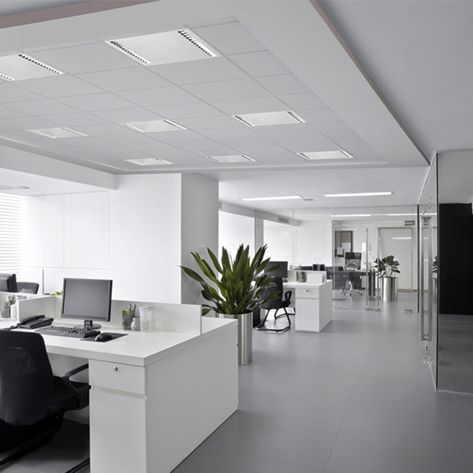 Mit ihrem matt-weißen Gehäuse aus pulverbeschichtetem Metall integriert sich die Sonis EVO unauffällig in alle hellen Deckenflächen. Dank Darklight-Effekt punktet sie durch unaufdringliche Präsenz und erzeugt ein blendfreies, normgerechtes Arbeitslicht.